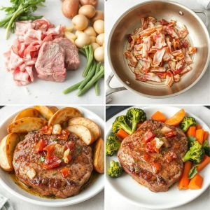 Jeg elsker å lage denne retten på dager hvor jeg ønsker noe enkelt, men samtidig smakfullt. Det minner meg om søndagsmiddager med familien, hvor alle sitter lenge rundt bordet og koser seg. Mitt beste tips er å steke baconet først, slik at du kan bruke baconfettet til å steke biffen for ekstra smak. Hvis du vil ha en sunnere variant, anbefaler jeg å bruke magert bacon og servere retten med søtpoteter eller blomkålmos i stedet for vanlige poteter. Og husk – et dryss med ferske urter på toppen kan løfte retten til et helt nytt nivå!