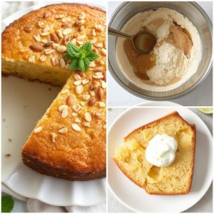 Jeg ønsket å lage en sunnere versjon av denne deilige kaken, så jeg byttet ut hvetemel med havremel og brukte honning i stedet for raffinert sukker. Gresk yoghurt gir ekstra fuktighet, og mandler på toppen gir en deilig sprø kontrast til den myke kaken.