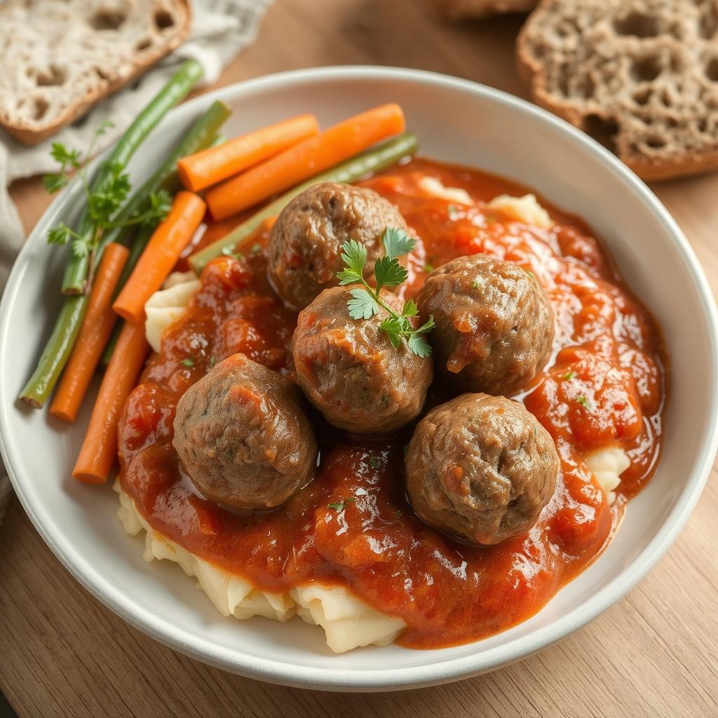 - Servering: Anrett kjøttbollene med tomatsaus over fullkornspasta eller server dem alene med en frisk salat.