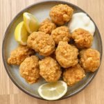 - Dypp ferdigkokte biter i ponzu eller goma-sausen før du spiser. Server med ris og syltet grønnsaker.