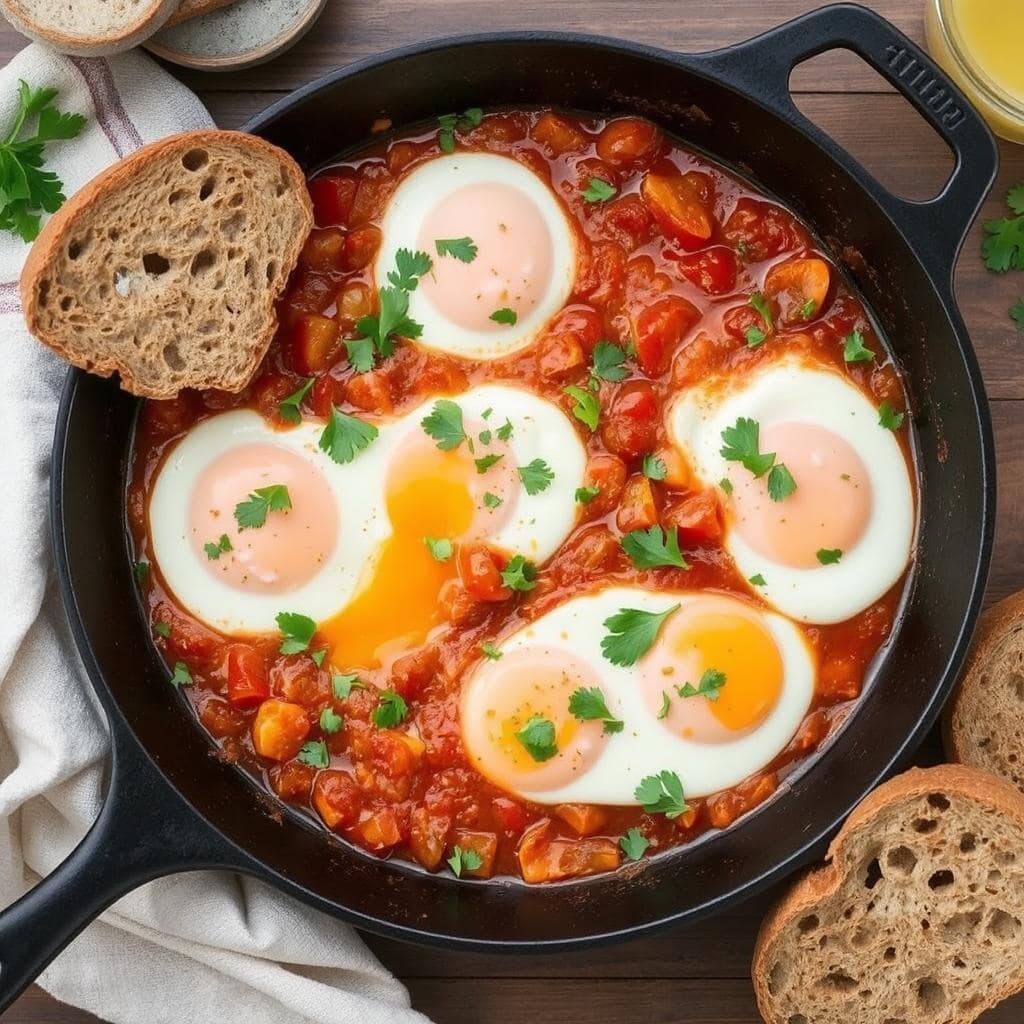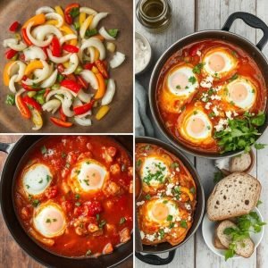 Shakshuka er en populær rett fra Nord-Afrika og Midtøsten, bestående av egg posjert i en smakfull tomatsaus med løk, paprika og varme krydder. Retten har sine røtter i Tunisia, men er nå en internasjonal favoritt som nytes til både frokost, lunsj og middag. Shakshuka med paprika er en fargerik og sunn variant som fremhever de søte og røkte smakene av paprika. Jeg elsker denne retten for dens enkelhet og hvordan den fyller kjøkkenet med varme og appetittvekkende aromaer.