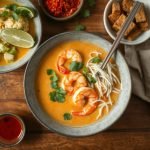 Servering: Legg nudlene på tallerkener, topp med rekene, vårløk og koriander. Server med limebåter for ekstra friskhet.