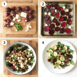 Jeg lagde denne rødbetsalaten for første gang en høstdag da jeg trengte noe både mettende og friskt etter en skogstur. Rødbeter har alltid hatt en spesiell plass i hjertet mitt – mamma brukte dem i syltede varianter, men jeg ville gjøre noe nytt. Jeg blandet de ovnsbakte rødbetene med feta jeg hadde liggende, og strødde over valnøtter som jeg hadde ristet raskt i pannen. Resultatet? En salat som både så ut som kunst og smakte helt nydelig. Nå har den blitt fast innslag både på hverdagsmiddager og små vennemiddager.