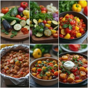 Denne retten er en hyllest til alt det grønne og gode som modnes i sollys. Grønnsakene får stå og bake seg myke og sødmefulle, og de utvikler en nydelig karamellisert overflate i ovnen. Tomatene gir en naturlig saus, mens aubergine og squash smelter nesten på tunga. Jeg liker hvordan paprikabitene holder litt på spensten og gir sødme mot det krydrede. En klype kanel og spisskummen gir akkurat nok dybde uten å ta over. Hver skje føles som å spise en varm bris fra sør – mild, jordnær og fylt med sol.