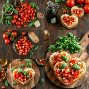 Den ultimate hjerteformede bruschetta med tomater og basilikum
