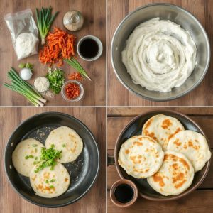 Sprø og smakfulle koreanske kimchi-pannekaker med soyadipp