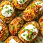 Forvarm ovnen til 220 °C. Legg potetbåtene på en bakeplate med bakepapir i ett lag. Stek i ca. 30–35 minutter, snu båtene halvveis for å sikre jevn sprøhet. - Topp og server: