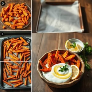 Jeg ble først kjent med søtpotetfries da vi spiste på en liten kafé i København – der serverte de dem med chilimajones, og jeg husker jeg tenkte: «Dette må jeg lage hjemme, bare litt sunnere!» Så jeg gikk hjem og prøvde meg frem med ovnsbaking, mindre fett og en lettere yoghurtbasert dip. Etter noen forsøk satt det, og nå er disse sprø og smaksrike søtpotetene fast på menyen hjemme hos oss – både som tilbehør og som en kosemiddag i seg selv. Barna elsker dem, og jeg føler meg som en supermamma når jeg serverer noe som både smaker godt og er næringsrikt.