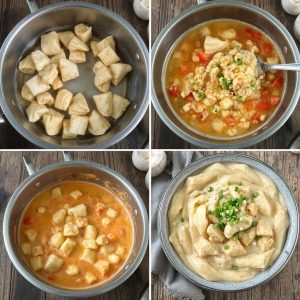 - Varm smør eller olje i en stor panne på middels varme. Stek løk og hvitløk til de er myke og aromatiske.