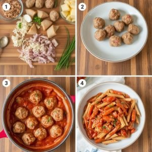 - Kombiner alt: Legg kjøttbollene i sausen og la det småkoke i 20 minutter.