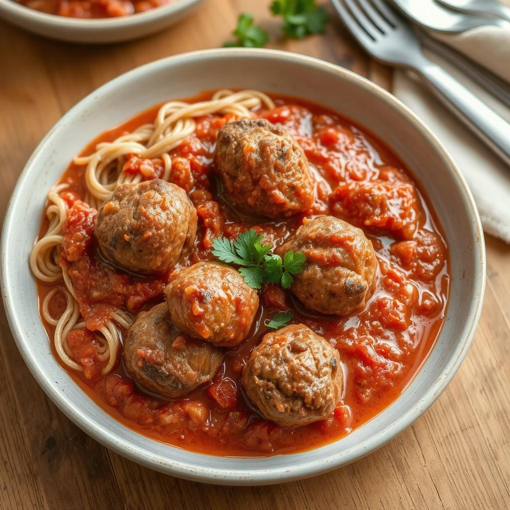Denne retten balanserer fyldige og saftige smaker med en lett syrlighet fra tomatsausen. Kjøttbollene er møre og luftige takket være havremelet og eggene, mens krydder som hvitløk og chili gir en dybde og en liten kick. Sausen er tykk og fyldig, perfekt for å trekkes opp med litt fullkornspasta eller ferskt grovbrød. Det er en deilig harmoni mellom det milde og det sterke, og teksturene gir en tilfredsstillende følelse i hver bit.