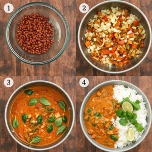 Denne linsegryten har en kremet konsistens takket være kokosmelken, mens spinat tilfører en frisk og lett tekstur. Linsene er møre og gir en mild nøtteaktig smak, mens tomatene tilfører en syrlig balanse. Varme krydder som ingefær, gurkemeie og karri gir gryten en kompleks og fyldig smak. Hver skje er som et trøstende, krydret klem som varmer kroppen.
