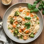Jeg har alltid elsket pasta, og denne kremete versjonen har blitt en stor favoritt hjemme hos oss. Jeg husker første gang jeg laget retten – jeg var litt usikker på hvordan havremel og plantebaserte ingredienser ville fungere, men det ble en utrolig suksess. Hele familien elsket det, og jeg har laget den mange ganger etter det! Et lite tips er å bruke fullkornspasta for ekstra fiber og en ekstra smakfull dimensjon. Denne retten er virkelig allsidig, og du kan gjerne bytte ut grønnsakene med det du har tilgjengelig i sesongen.