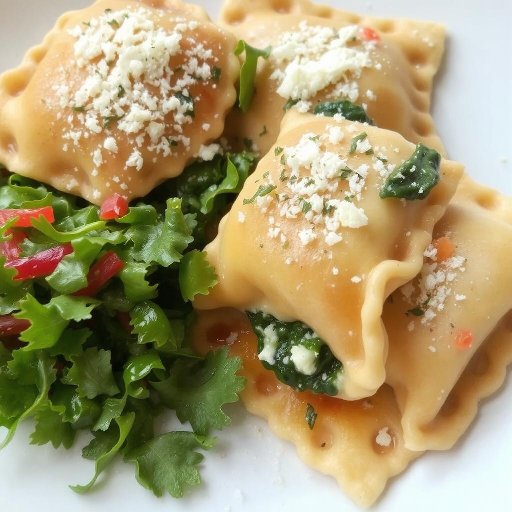 - Servering: Server raviolien med et dryss av revet parmesan og friske urter. Tilsett gjerne en grønn salat ved siden av for en frisk og sunn middag.
