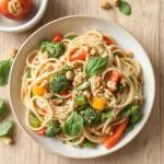 Jeg lager denne retten ofte når jeg vil ha noe enkelt, men smakfullt. Første gangen jeg prøvde havrefløte i pastasaus, ble jeg overrasket over hvor kremet den ble uten melk eller fløte. Nå bruker jeg det ofte som et lettere alternativ. Jeg varierer gjerne grønnsakene etter sesong – om vinteren tilsetter jeg sopp og gulrot, mens sommeren byr på squash og asparges. En håndfull ristede frø eller nøtter på toppen gir ekstra crunch. Når jeg serverer denne retten til familien, har vi alltid en grønn salat og grovt brød ved siden av.