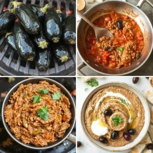 Zaalouk er en tradisjonell marokkansk auberginedipp som kombinerer bakt eller stekt aubergine med tomater, hvitløk, olivenolje og krydder som spisskummen og paprika. Denne retten er en fast del av det marokkanske mezze-bordet og serveres ofte som en siderett, dipp eller salat. Zaalouk er kjent for sin dype smak, silkeaktige tekstur og krydrede aroma. Den har røtter i det marokkanske kjøkkenets tradisjon for å bruke sesongens grønnsaker og aromatiske krydder. Jeg elsker Zaalouk for sin enkelhet, intense smak og allsidighet – den kan nytes både varm og kald!