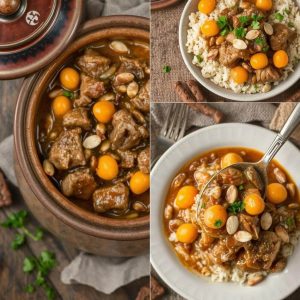 Tagine med lam og aprikoser er en tradisjonell marokkansk rett som kombinerer møre kjøttstykker med sødmen fra tørkede aprikoser, krydder og en rik saus. Retten tilberedes vanligvis i en tagine (leirgryte), som bevarer smakene og gir en autentisk opplevelse. Jeg elsker denne retten fordi den kombinerer søtt, krydret og salt på en harmonisk måte.