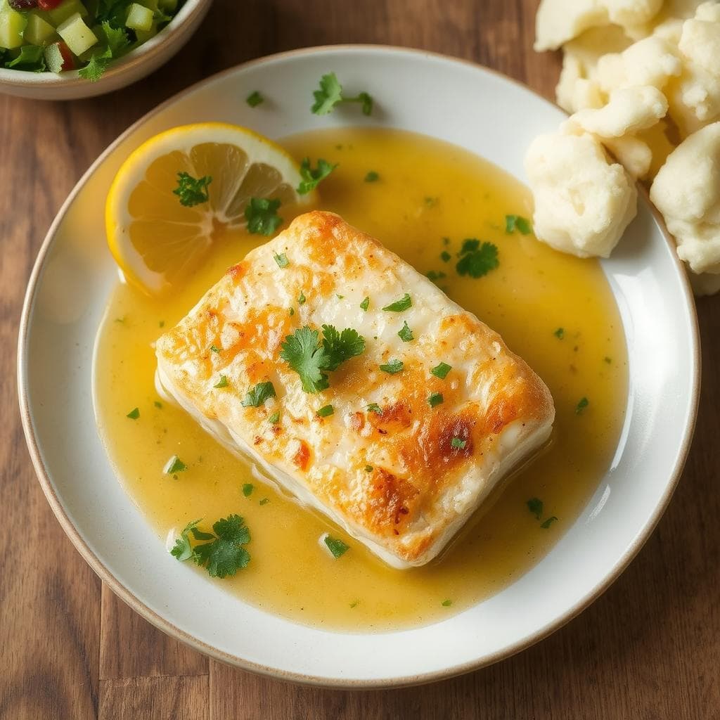 - Servering: Legg torskekjakene på tallerkener, hell sausen over og topp med fersk persille. Server med ønsket tilbehør og sitronbåter på siden.