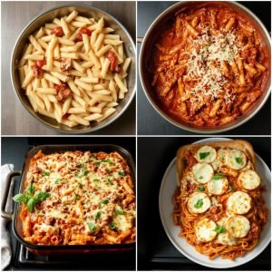 Ziti al Forno er rik på smak med en perfekt balanse mellom saftig tomatsaus, krydret kjøtt og smeltet ost. Den bakte osten på toppen blir gylden og sprø, mens pastaen holder på sausen og skaper en fyldig, kremet tekstur. Jeg elsker hvordan retten gir et harmonisk samspill av smaker, fra den salte parmesanosten til den aromatiske tomatsausen med urter.
