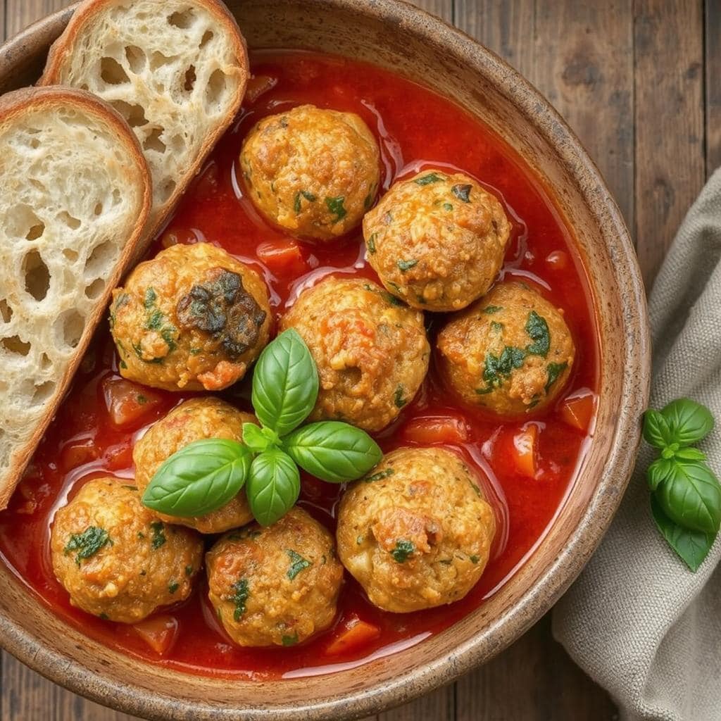 Zucchiniboller i krydret saus er en eksplosjon av smaker. Bollene er myke og saftige, med et hint av sødme fra zucchini og aromatiske toner fra hvitløk og urter. Sausen tilfører en intens krydret varme og silkemyk tekstur som komplementerer bollene perfekt. Hver bit gir en tilfredsstillende balanse av krydder og friskhet.