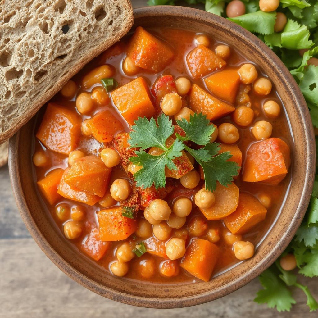 Denne gryten er en ren fryd for smaksløkene. De møre grønnsakene, som søtpotet og gulrøtter, gir en naturlig sødme som balanseres perfekt av den fyldige tomatsausen. Kikerter tilfører en fast tekstur som gir retten en tilfredsstillende tyggemotstand, mens krydderne – spesielt spisskummen og paprika – gir en varm og aromatisk dybde. Urter som timian og oregano løfter smaken med en frisk og jordnær tone, mens en klype rosmarin gir et hint av middelhavsatmosfære. Duften av gryten mens den småkoker er nesten like deilig som smaken i seg selv.