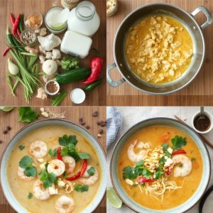 Laksa er en av de mest ikoniske rettene i Sørøst-Asia og finnes i mange varianter, men den mest kjente kombinerer en rik kokosmelkbase med krydder og nudler. Opprinnelig stammer Laksa fra Peranakan-kjøkkenet, en blanding av malaysisk og kinesisk matkultur, og har utviklet seg gjennom handelsruter og migrasjon. Den er spesielt populær i Malaysia, Singapore og Indonesia, hvor hver region har sin unike vri. Det som gjør Laksa så spesiell, er hvordan den balanserer kremet kokos, syrlig lime, sterke krydder og den dype umamismaken fra sjømat eller tofu. Jeg elsker denne suppen fordi den alltid gir meg følelsen av varme og velbehag.