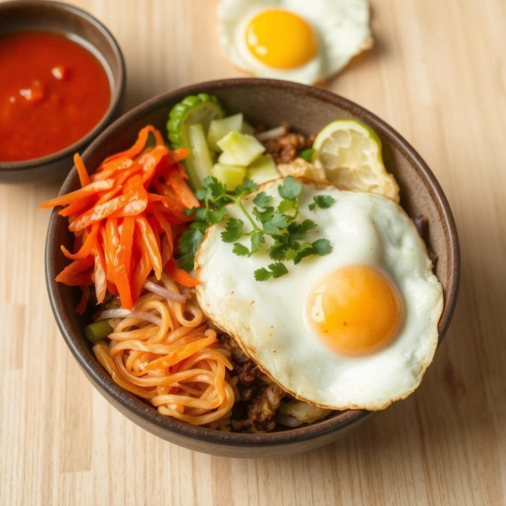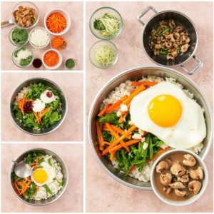Bibimbap, som betyr “blandet ris” på koreansk, er en tradisjonell rett med røtter som strekker seg tilbake til Joseon-dynastiet (1392–1897). Opprinnelig ble den laget av rester som ble blandet sammen i en bolle med ris. I dag er bibimbap en stjerne i det koreanske kjøkkenet, kjent for sine vakre farger og balansen mellom smaker. Retten serveres ofte med en speilegg på toppen og gochujang (koreansk chilisaus) for å gi et krydret kick.