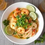 Kok nudlene: Følg anvisningen på pakken, skyll dem i kaldt vann for å unngå klebrighet.