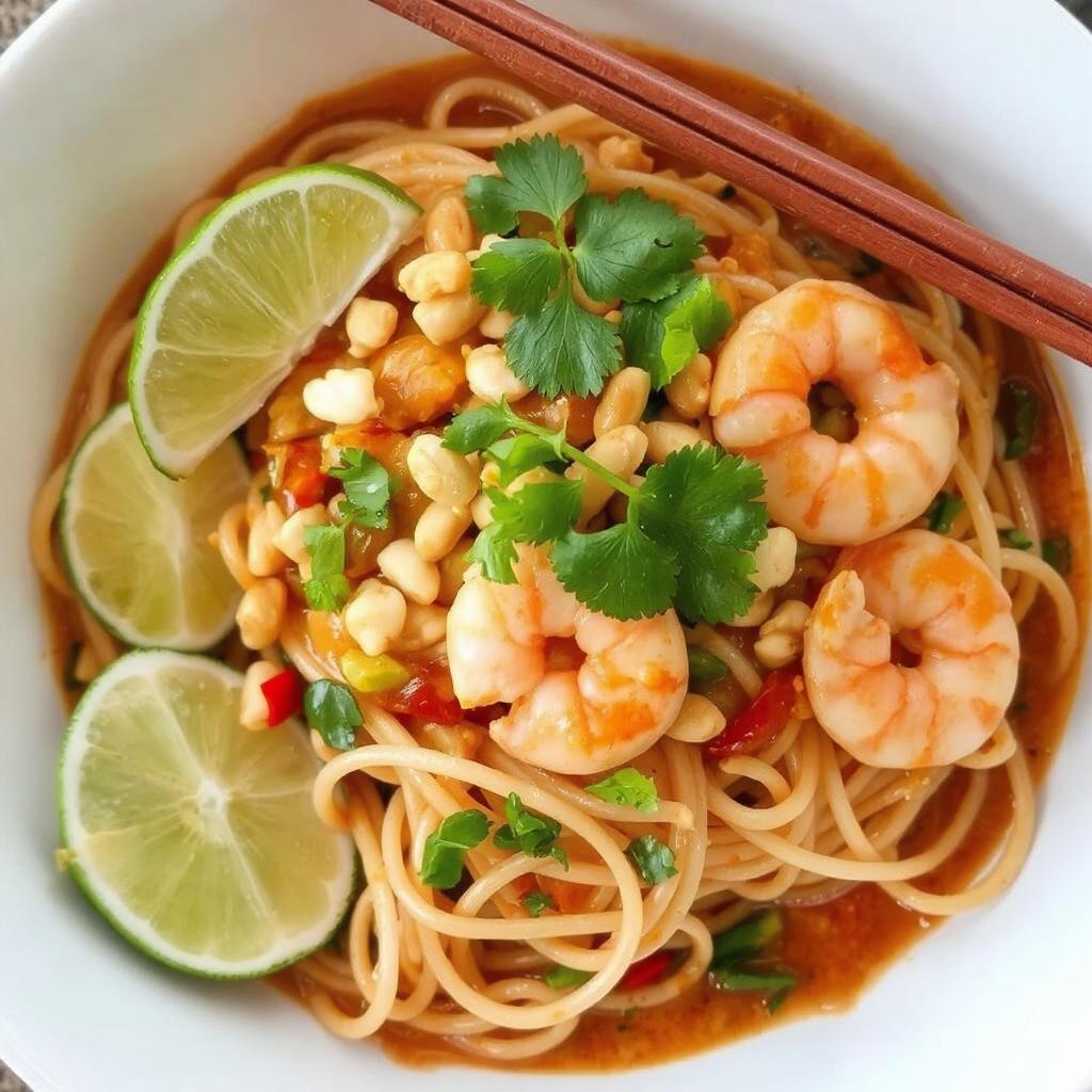 Smakfull Pad Thai med reker og sprø peanøtter