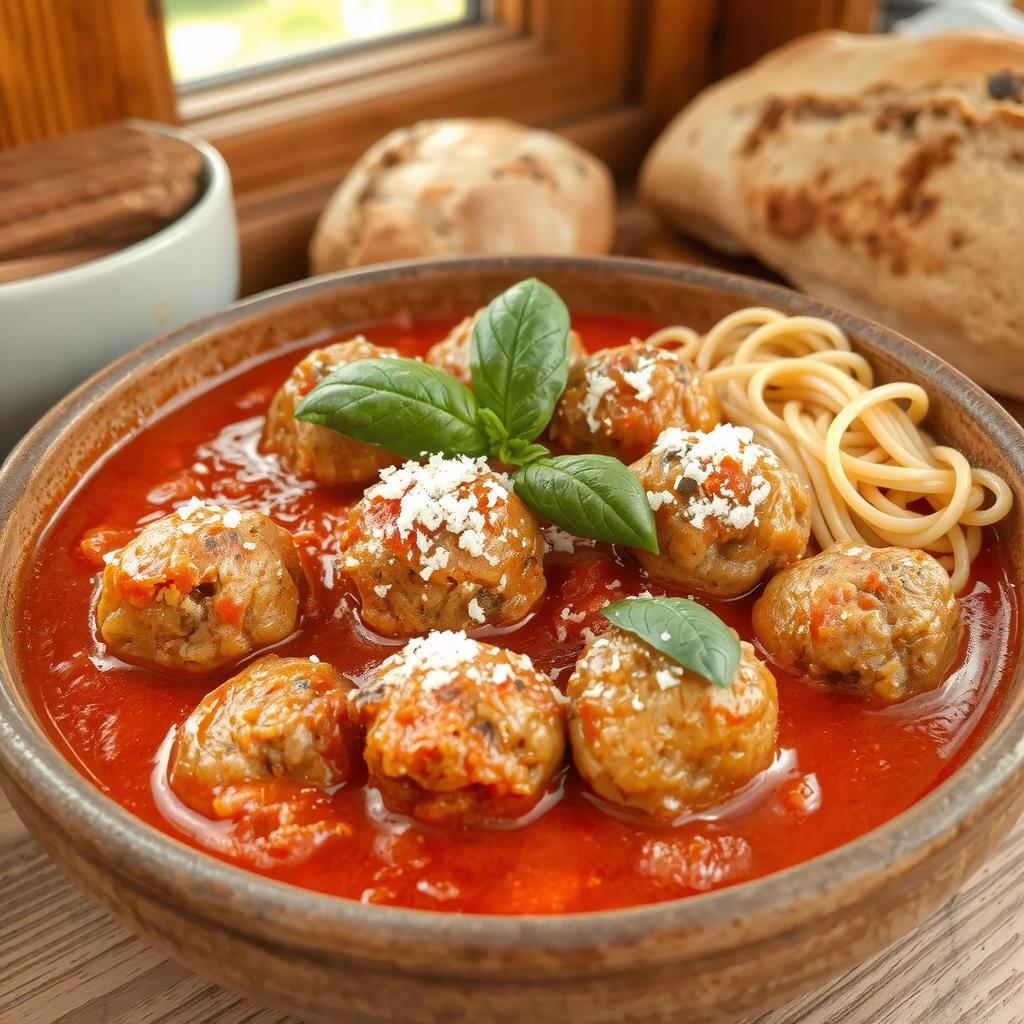 Denne italienske kjøttdeigretten har sin opprinnelse i middelhavsområdet hvor ferske urter, solmodne tomater og aromatiske krydder er hjørnesteiner i kjøkkenet. Kjøttboller i tomatsaus ble en favoritt i det amerikanske kjøkkenet gjennom italienske immigranter og er i dag en klassiker som samler familier rundt middagsbordet. Denne oppskriften er både næringsrik og enkel, og jeg elsker å lage den når jeg vil skape en hyggelig atmosfære hjemme. Den er like perfekt til hverdags som til en helgemiddag med venner.