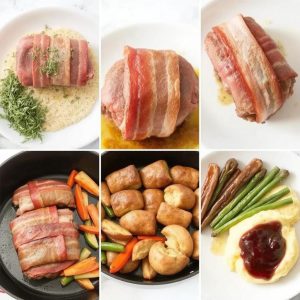• Surr med bacon: Pakk baconskivene rundt hjortefileten og fest dem med tannpirkere eller kjøkkentråd.