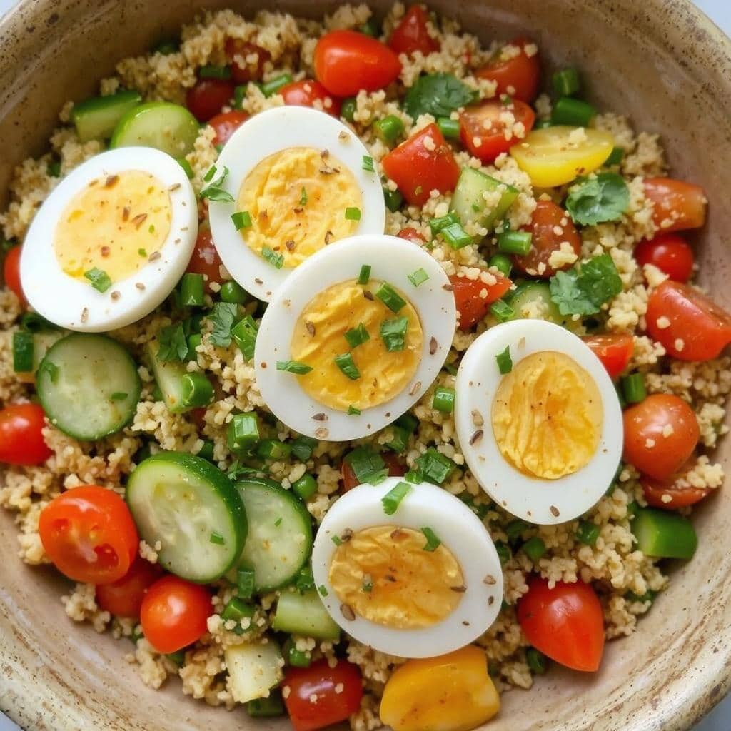 Bulgursalat er en rett med røtter i det østlige Middelhavet, kjent for sin evne til å kombinere sunne ingredienser med smakfulle krydder. Denne moderne versjonen med egg bringer inn en kremet og mettende komponent som gjør retten enda mer balansert. Jeg oppdaget denne salaten første gang på en sommersammenkomst, og jeg ble umiddelbart forelsket i hvordan de lune, nøtteaktige tonene fra bulgur harmonerte med de kremete eggene og friske grønnsakene. Siden den gang har dette blitt min favoritt når jeg ønsker noe sunt, smakfullt og enkelt å lage.