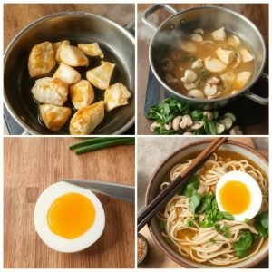 1. Kok buljongen: Varm opp kyllingkraften i en kjele. Tilsett soyasaus, sesamolje, hvitløk og ingefær. La småkoke i ca. 10 minutter for å blande smakene.