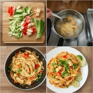 Kyllingnudler er min go-to-rett når jeg trenger noe raskt og velsmakende. Jeg husker spesielt en kveld da jeg lagde dette for familien med rester av grønnsaker fra kjøleskapet – det ble en stor suksess! Et tips er å ikke overkoke nudlene, slik at de holder seg faste og absorberer sausen bedre. Prøv også å tilsette sesamolje for ekstra dybde i smaken.