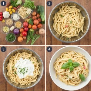 Denne retten kom til etter en hektisk arbeidsdag da jeg ønsket noe sunt og raskt til lunsj. Fullkornspasta er en av mine favoritter fordi den er enkel å lage, samtidig som den gir langvarig energi. Jeg elsker hvordan denne oppskriften kombinerer grønnsaker, urter og en kremet saus av gresk yoghurt og parmesan. Med friske ingredienser og en balansert smak har den blitt en fast favoritt, ikke bare hjemme, men også som en matboksfavoritt på jobb. Det beste er hvor fleksibel den er – du kan tilpasse den etter hva du har i kjøleskapet!