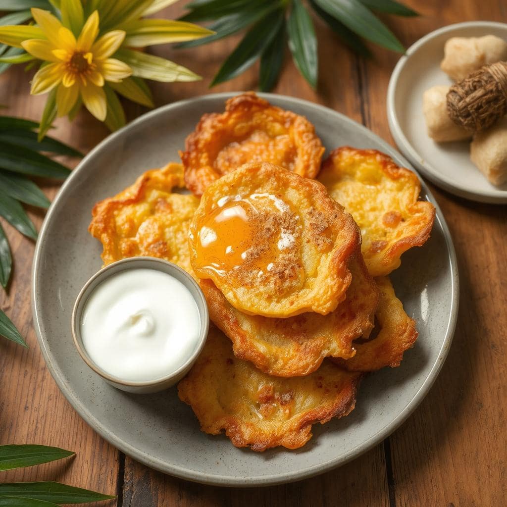 Pisang Goreng, som betyr “stekt banan,” er en tradisjonell indonesisk snacks som har vunnet hjerter over hele Sørøst-Asia. Den har sin opprinnelse som en enkel måte å bruke modne bananer på, og har blitt en populær gatematrett. Pisang Goreng serveres ofte som en søt ettermiddagsmat og er kjent for sin sprø utside og myke, søte kjerne. Jeg elsker denne retten for dens enkelhet og hvordan den vekker nostalgiske minner om varme somre og familietid.