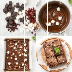 Rocky Road er en favoritt hjemme hos meg, spesielt når jeg vil lage noe raskt til en sammenkomst eller helgekos. En gang brukte jeg tørkede tranebær i blandingen for en syrlig vri – det ble en stor suksess! Mitt beste tips er å bruke sjokolade av god kvalitet og tilpasse oppskriften med favorittingrediensene dine. Oppbevar godbitene i kjøleskapet for en fastere konsistens.