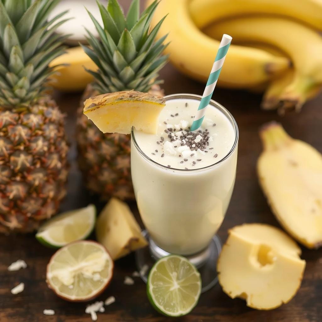 Ananas har vært brukt i juice og smoothies i generasjoner, spesielt i varmere strøk hvor den vokser naturlig. Den er både leskende og næringsrik, og når den kombineres med kremet kokosmelk og litt syrlig lime, får du en utrolig harmonisk drikk. En liten klype ingefær gir et friskt sting, og chiafrø tilfører ekstra fiber og omega-3.