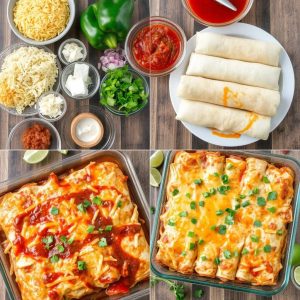 Enchiladas med ost er et smakseventyr. Den kremete smeltede osten kombineres med den syrlige tomatsausen og får en lett sødme fra løk og paprika. Teksturen er uimotståelig: myke tortillalefser som holder på det fyldige ostefyllet, toppet med en lett sprø og boblende osteskorpe etter gratinering. Hver bit er en balanse av fylde og friskhet.