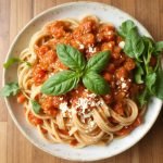 Spaghetti med tomatsaus er en klassisk rett fra det italienske kjøkken, og den har vært en favoritt i mange år. Denne retten ble først kjent i Sør-Italia, spesielt i Napoli, hvor pasta og tomater er essensielle ingredienser. Etter at tomaten ble introdusert til Europa på 1500-tallet, ble tomatsaus en vanlig rett som har utviklet seg til utallige varianter. Jeg har laget en sunnere versjon av denne retten med fullkornspasta for å gjøre den mer næringsrik og gi den et ekstra fiberløft. Den er perfekt for både hverdagsmiddager og spesielle anledninger.