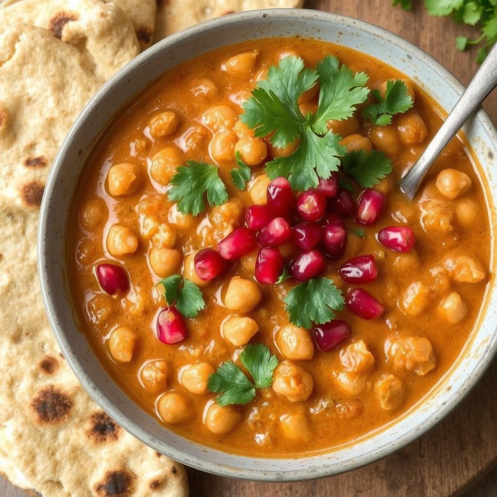 - Servering: Anrett gryten i skåler, topp med frisk koriander og granateplekjerner, og server med fullkornsflatbrød.