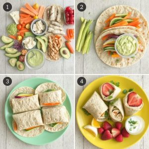 - Rull sammen: Rull wrapsene forsiktig sammen og skjær dem i to for enklere håndtering for barna.