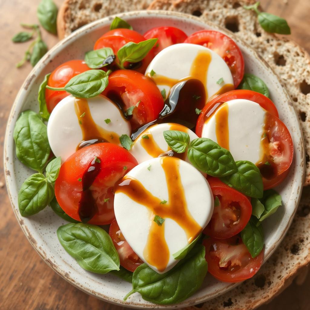 - Servering: Server caprese-salaten umiddelbart med et stykke grovt brød eller en lett grønn salat ved siden av.