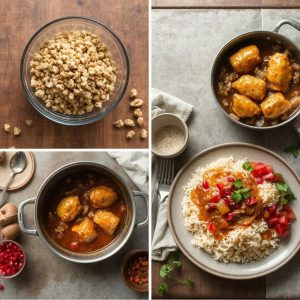 Fesenjan har en rik, kremet tekstur fra de malte valnøttene, som gir en lett kornet og fyldig saus. Smaken er en perfekt balanse mellom sødmen fra granateplesirup og den dype, jordlige smaken av valnøtter. Et hint av kanel og safran gir retten varme og aromatisk kompleksitet. Jeg elsker hvordan kyllingens mørhet smelter sammen med sausen og skaper en harmonisk opplevelse med hver bit.