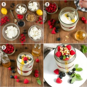 Denne desserten byr på en deilig kombinasjon av kremete og friske smaker. Cottage cheese gir en mild, syrlig base som balanseres perfekt av sødmen fra honning. Friske bær som blåbær og jordbær tilfører saftighet og naturlig sødme, mens valnøtter gir en spennende, sprø kontrast. Sitronens hint av friskhet hever smaken ytterligere og gir desserten en elegant og balansert avslutning. Når jeg spiser denne desserten, elsker jeg hvordan hver bit gir en ny tekstur, fra det myke og kremete til det knasende og friske.