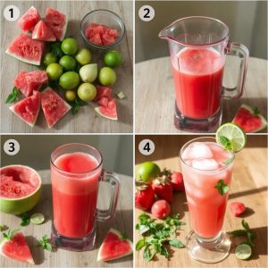 Jeg ble inspirert til å lage denne juicen etter en ferie i Spania, der de serverte kald vannmelonjuice med lime på nesten hvert hjørne. Det var så enkelt – og så genialt! I varmen føltes det som å drikke ren friskhet. Da jeg kom hjem, begynte jeg å eksperimentere på mitt eget kjøkken. Jeg ville lage en sunn, naturlig versjon uten sukker, med norske urter og litt ekstra friskhet. Nå lager jeg den hele sommeren – den er blitt en fast tørsteslukker her i huset og et lite ritual når solen skinner og verandadøren står åpen.