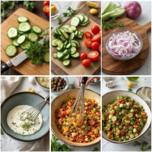 Denne salaten har jeg laget mange ganger – til grillkvelder, som lunsj alene, eller som del av en buffé. En av de gangene jeg husker best, var en sommerdag da vi hadde piknik i hagen og serverte denne med kald kylling og grovt brød. Det ble en suksess! Jeg pleier å bruke gresk yoghurt for ekstra kremet dressing, og jeg lar alltid salaten trekke i kjøleskapet i minst ti minutter før servering. Det gir bedre smak og gjør den mer balansert. Og et lite tips – skjær agurken i tynne halvmåner for best tekstur!