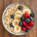 - Topp grøten med ekstra frukt, hakkede nøtter og eventuelt en skje med yoghurt for ekstra kremethet.