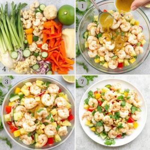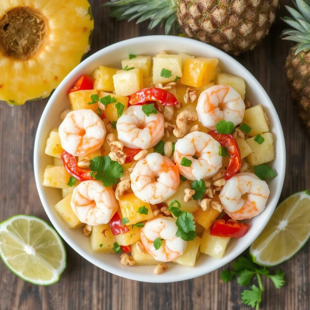 Denne salaten ble etter hvert populær i europeiske og amerikanske kjøkken, spesielt i lette sommerretter. Kombinasjonen av saftige reker, sprø grønnsaker og søt ananas gir en nydelig kontrast av smaker og teksturer. Jeg har laget en lett dressing med lime og honning for å binde alt sammen og gi salaten en perfekt balanse mellom søtt, syrlig og salt.