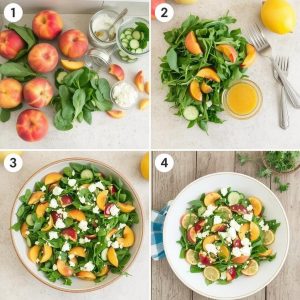 Sommersalater har alltid hatt en spesiell plass i hjertet mitt, men det var først da jeg var på ferie i Provence at jeg oppdaget gleden av å bruke frukt i salater. På et lite marked kjøpte jeg solmodne nektariner, og på hotellets terrasse serverte de en salat med nektariner, spinat og ost. Jeg var solbrent og lykkelig, og smaken satt seg i minnet. Hjemme i Norge lagde jeg min egen vri – med feta, grønne blader og en lett sitrondressing. Nå lager jeg den hver sommer, ofte som lunsj med grovt brød eller til grillmat.